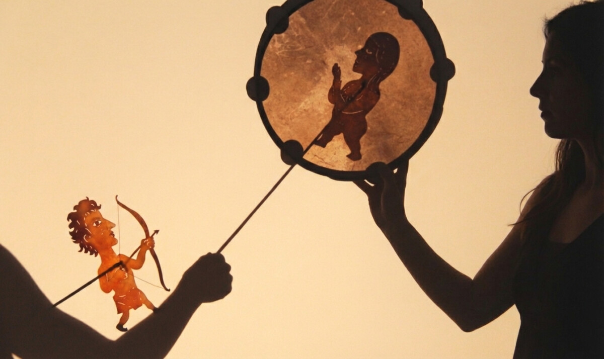 Marionnettes d’ombres en peaux de chèvres. Fabrication inspirées du théâtre Karagöz, tradition de théâtre d’ombres ottomane.